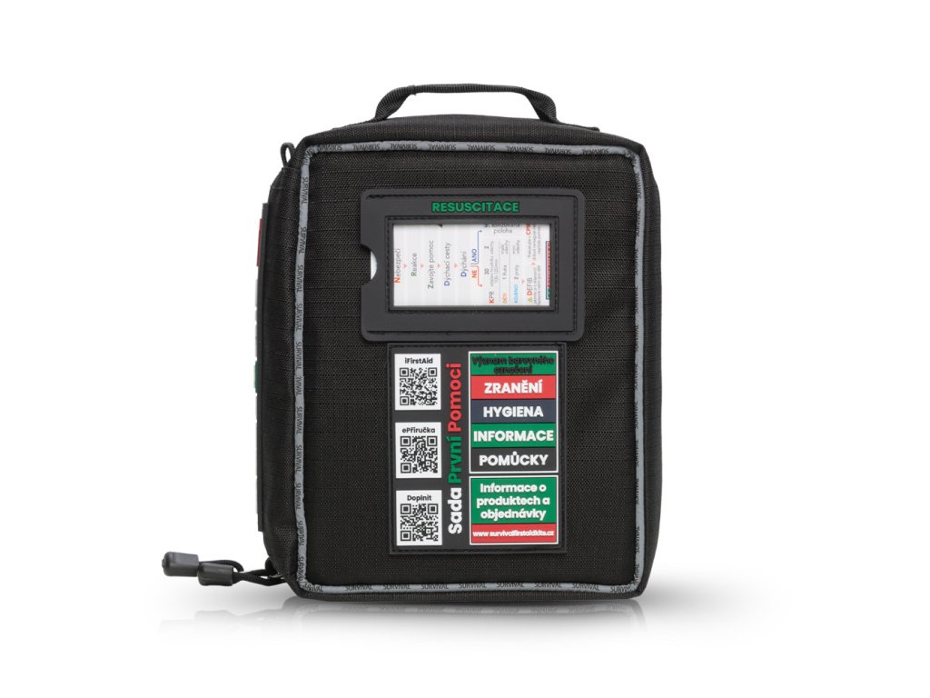 Obal z odolného 600D Oxford polyesteru, kvalitní zipy YKK a kompatibilita s MOLLE systémem zajišťují dlouhou životnost a snadné uchycení. Celý obsah je v češtině, včetně názvů položek, návodů k použití a příručky první pomoci. K dispozici je i mobilní aplikace iFirstAid zdarma.